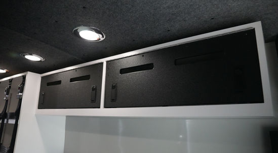 Products: Generator: Onan 7,000-watt, 120V, 60 Hz commercial gasoline generator (soundproofed exterior compartment, piped to fuel tank), Inverter/Charger: Victron MultiPlus-II, Electric Awning, Rear Ramp for EOD Robot, Custom Interior with Corian counters, Passenger seat swivel adaptor, rolling task chair (secured)., HVAC: Roof-mounted 13,500 BTU w/ 5,600 BTU heat strip, Espar B4 fuel-fired heater,